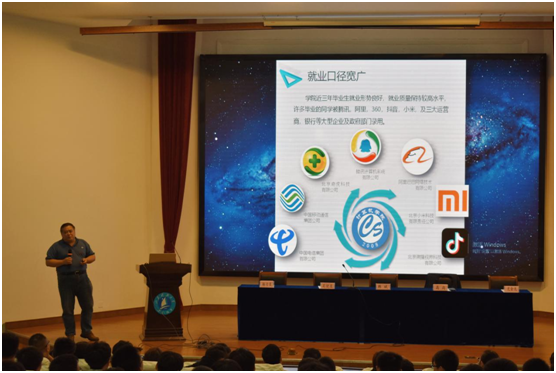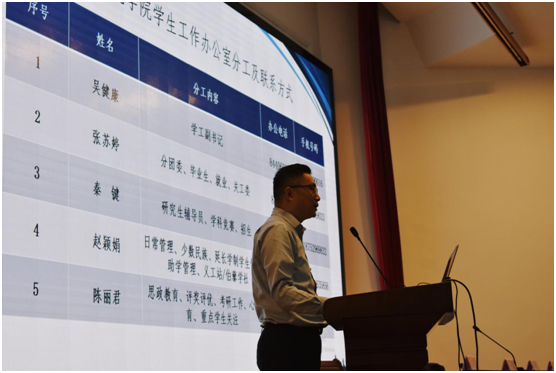 龙8-long8(中国)唯一官方网站党委副书记吴健康则介绍了学工管理的人员配备,给新生提供咨询的服务平台。之后学院的专业负责老师段先华、刘庆华、祁云嵩、于化龙、束鑫老师分别在演讲厅、教3和综B的教室,给对应专业的新生做更具体和富有指导性的学科背景、前沿和行业动态、职业规划等知识分享。
