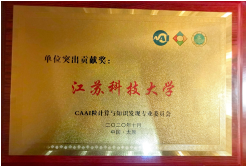恰逢中国人工智能学会(CAAI)粒计算与知识发现专业委员会成立20周年,31日晚上,在粒计算与知识发现专业委员会的颁奖典礼上,重点表彰了近十年为专委会做出突出贡献的单位。其中,江苏科技大学荣获CAAI粒计算与知识发现专业委员会颁发的单位突出贡献奖。