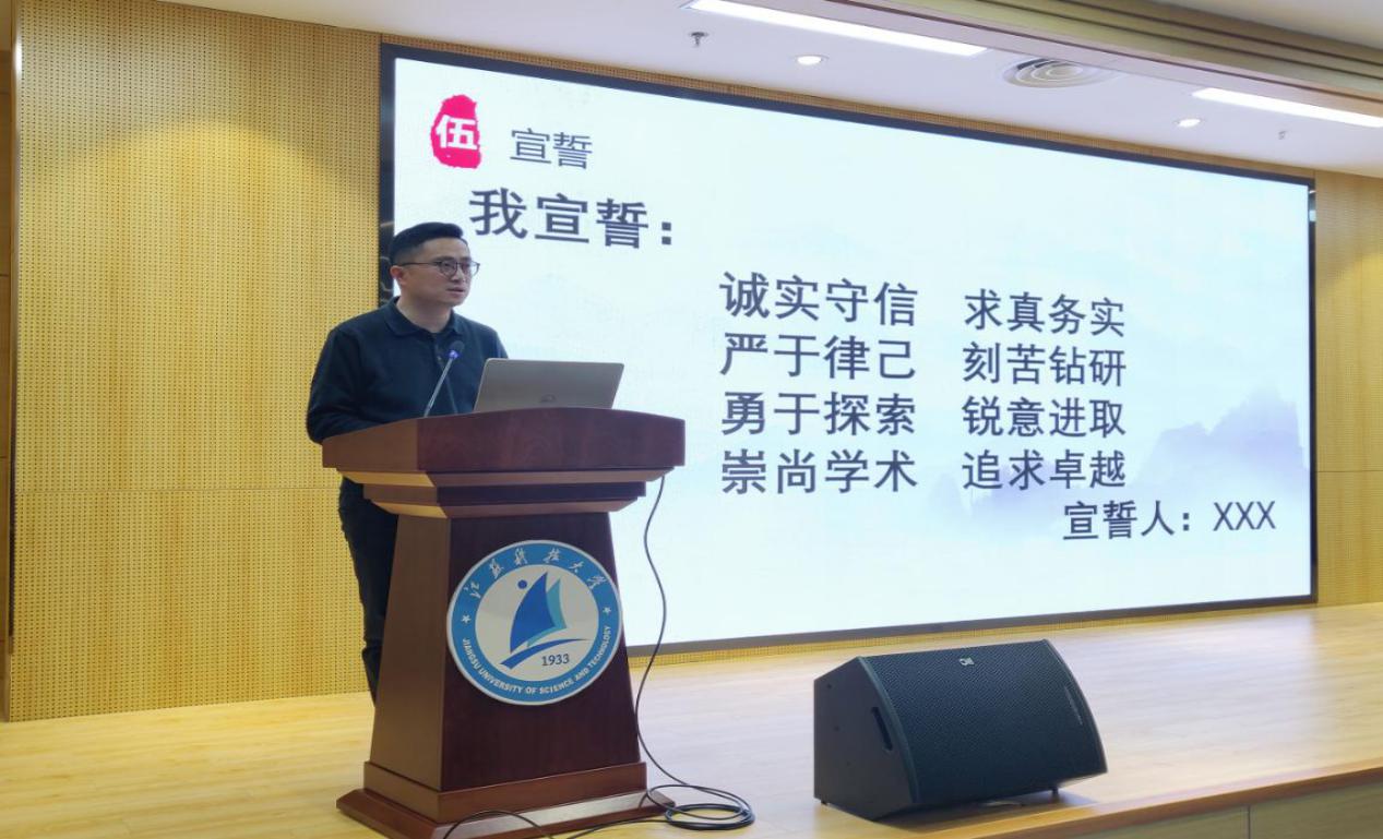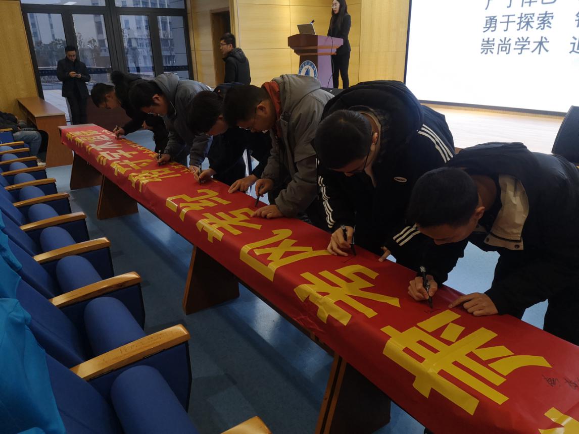 此次活动首先是研究生代表领学,学习研究生学术规范相关背景、学术不端典型案例、学术失信原因和诚信考试要求等,介绍考试作弊、学术不端会产生的严重后果。然后学院党委副书记吴健康老师作总结发言,强调考场纪律和学术规范要求,希望广大研究生恪守学术道德,做一个诚实守信之人。最后全体研究生进行诚信签名仪式,强化诚信意识。