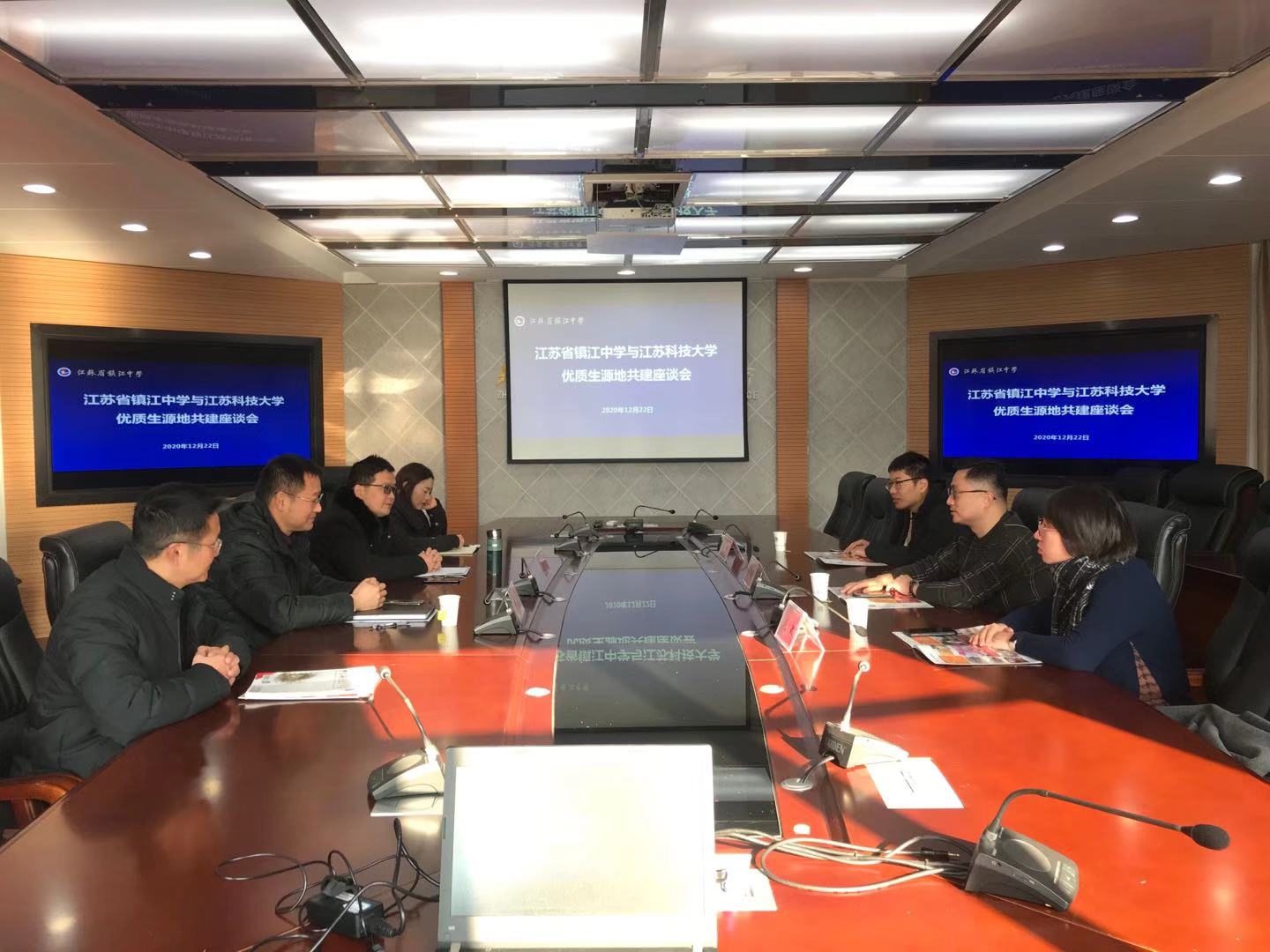 江苏科技大学招生宣传人员一行受到了镇江中学陆建根副校长的热烈欢迎,陆校长简要介绍了镇江中学的历史和办学特色,感谢江科大近年来招收和培养了镇江中学的学生,课程教学中心主任周照正,副主任江海健、施晓霞等老师就高中与高校联合培养方案以及科普教学、新高考改革进行了深入探讨。