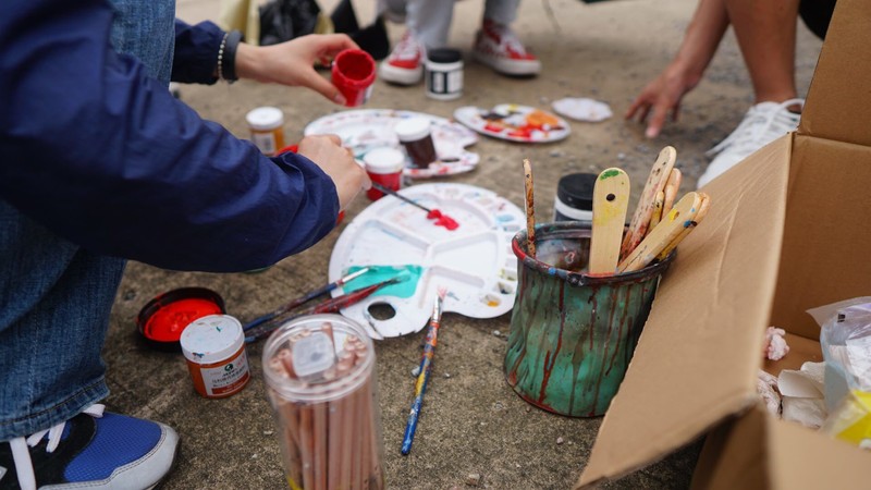 墙绘的绘制首先需要对图案轮廓进行绘制,然后进行颜料调色和上色。烈日炎炎下,成员们的汗水顺着脸颊滴落,他们却从未抱怨,用手背轻轻擦掉便继续未完成的绘画。经过所有成员的一次次修改,一次次研究讨论,终于完成了两幅墙绘的绘制。每位成员都以最饱满的热情投身于活动当中,真正发挥党员不怕吃苦、勇往直前的精神。