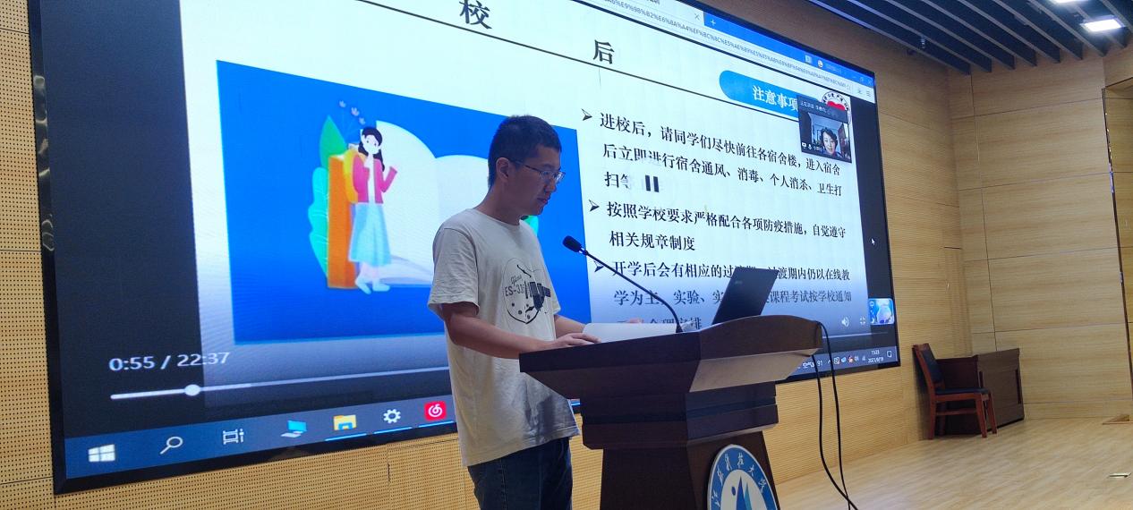 研究生辅导员秦键老师面向新同学进行了新生入学教育,就学校校纪校规、研究生管理各项制度及新生常见问题进行了全面的解读,同时在疫情防控,学术道德规范,防诈骗等安全意识培养等方面重点做了强调。