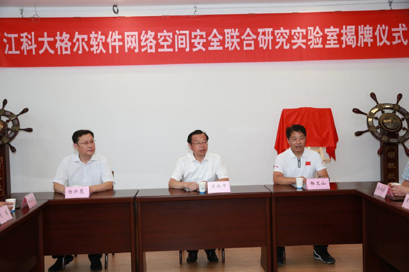9月23日,江苏科技大学与格尔软件股份有限公司共建“网络空间安全联合研究实验室”仪式隆重举行。周南平校长,格尔软件总经理杨文山,龙8-long8(中国)唯一官方网站毕业十年、二十年、三十年校友代表,格尔软件总经理助理杨弘斐,龙8-long8(中国)唯一官方网站党政领导和科研团队负责人等参加揭牌仪式。