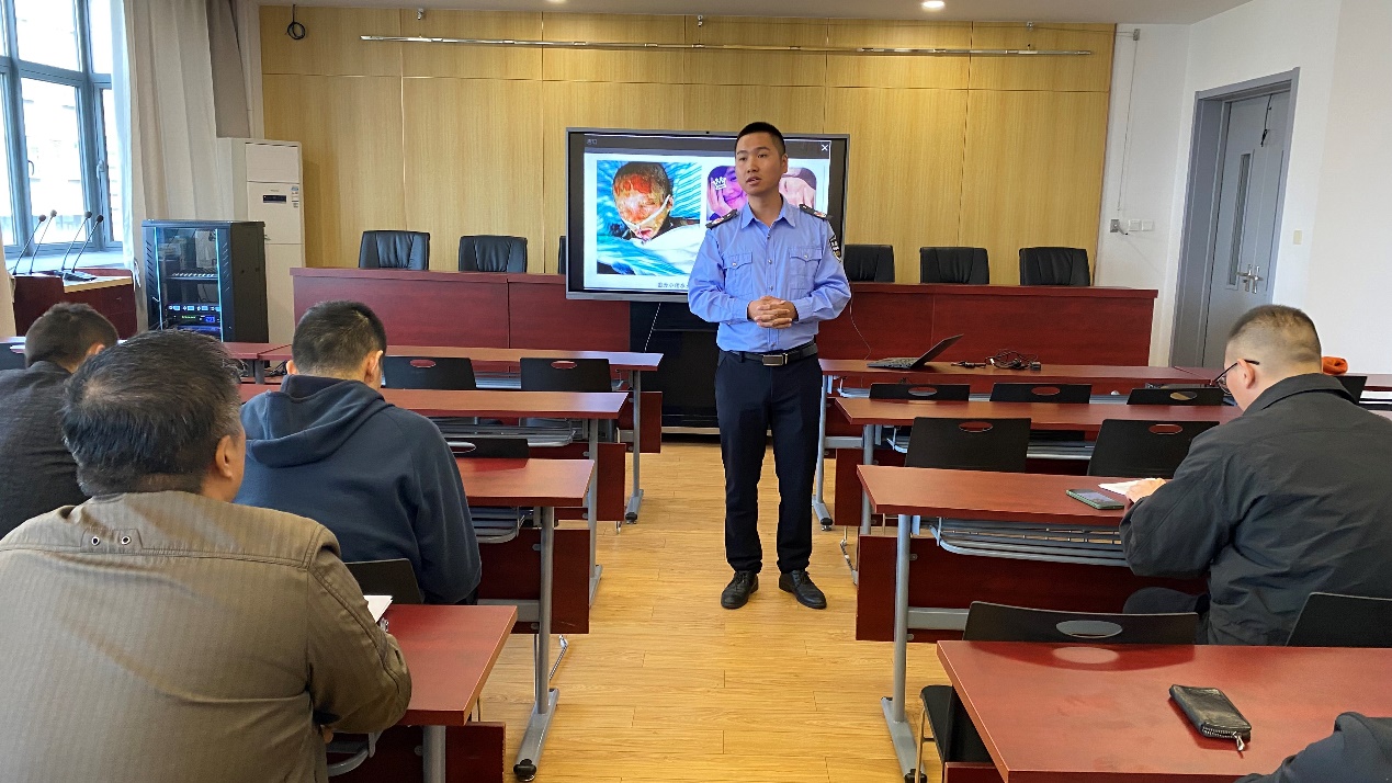 讲座开始之后,由刘警官上台介绍近年来的火灾案例、电灾案例。如2017年保姆纵火案,最近沈阳一小区爆炸等出现的问题以及火灾造成的影响,以此来提高大家对火灾的重视程度。
