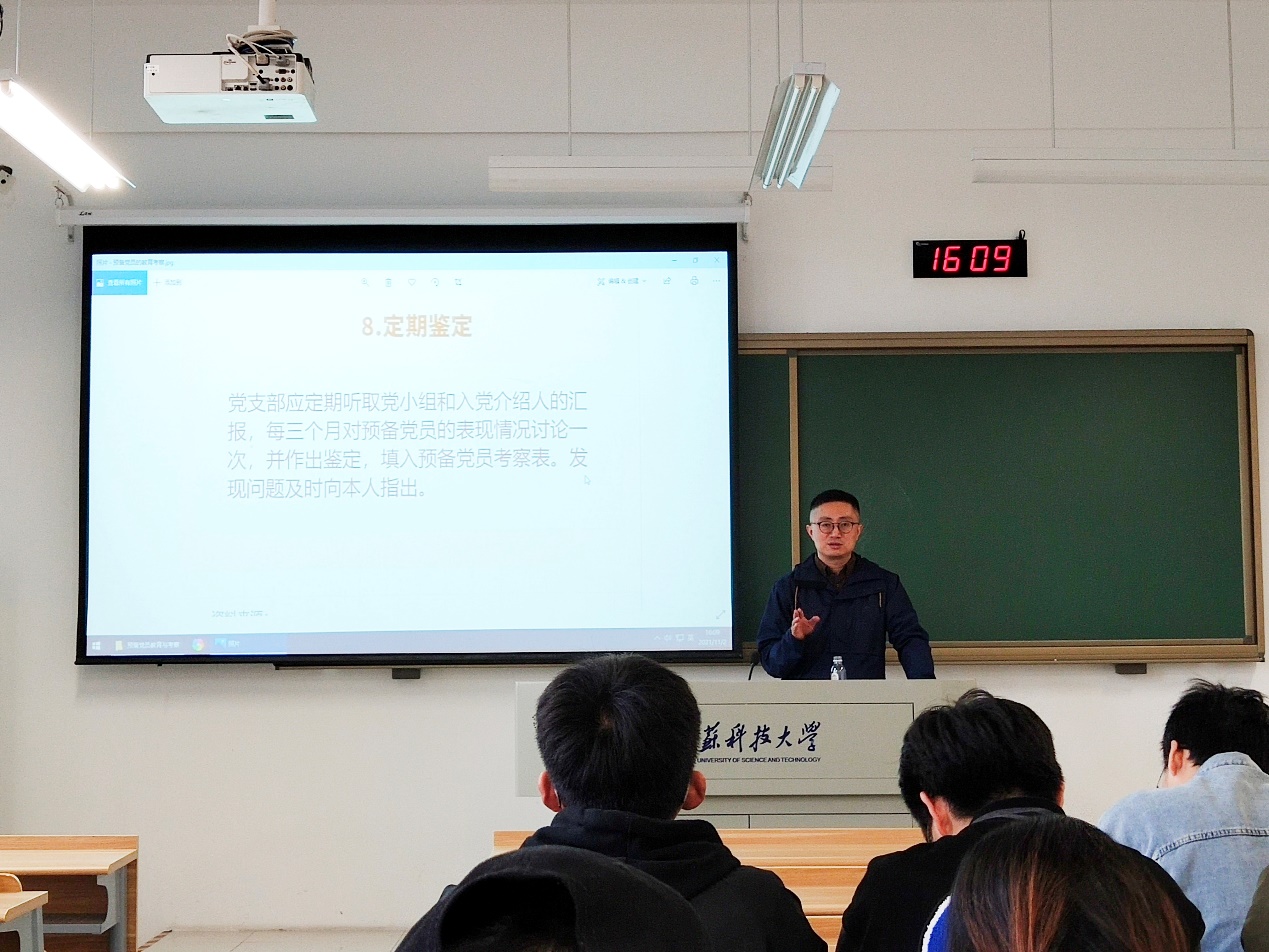 李秀明做开班动员,她谈到:本次预备党员培训,旨在坚定理想信念、增强党性、提高政治素质,教育引导广大预备党员自觉做共产主义远大理想和中国特色社会主义共同理想的坚定信仰者和忠实实践者,发挥好先锋模范作用。接着,吴健康正式开始授课,他强调:要成为一座完美的雕像,必定需要经过千锤万凿;一个合格的党员也是如此,要以党章为准则,不断磨砺自身,方能成为一名合格乃至优秀的党员。此外,他还结合身边时事,告诫在座预备党员,学生党员最基本的要求是要认真学习,遵守校规校纪,起到模范带头作用。