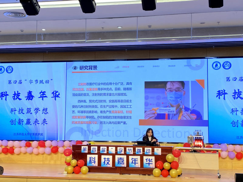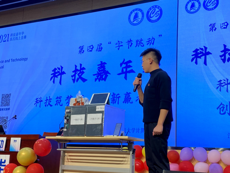 开幕式结束后,在主持人的介绍下,九项项目分为三个半场依次进行介绍。本次活动展示了《云上暖心外卖存取系统》、《候机厅机器人的巡检应用系统》、《检测注射剂缺陷的“智慧眼”》、《我可能看了假的地铁地图? ——格式塔理论》、智能车等九项科技作品,每三个项目介绍结束后,都安排了一次集中的答疑环节。同学们都积极发送弹幕,询问有关科技作品的各种问题,并得到了讲解人员的详细解答。
