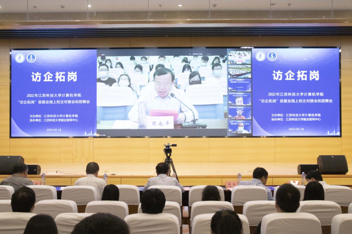 会上,周南平校长向用人单位和参会师生介绍了学校的基本情况、学校人才培养特色、学校应届毕业生情况等。周校长提到2022届高校毕业生规模首次突破千万,受新冠肺炎疫情等多重因素影响,就业形势严峻复杂。而此次“访企拓岗”促就业专项行动,旨在全力促进高校毕业生更加充分更高质量就业。为此,学校以“服务大局、聚焦行业、立足江苏”为原则,希望通过校企对接活动强化校企衔接、深化校企合作,打造优质人才“输送链”,提升毕业生就业的服务质量,开创协同育人新局面。讲话最后,周校长为江科大毕业生代言,代表学校诚挚邀请用人单位来校招揽人才,围绕开拓就业渠道和就业岗位等方面共同交流。