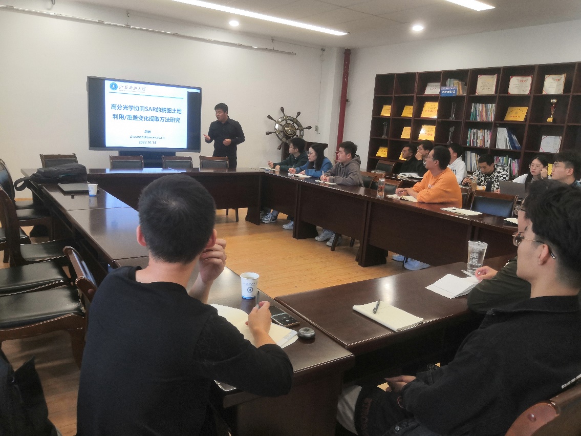 周楠博士作了题为《高分光学协同SAR的精细土地利用/覆盖变化提取方法研究》的报告,首先介绍了其目前所做工作的研究背景,着重强调了土地覆盖变化信息的精准解译的重要性;其次针对多元遥感影像这个研究课题,探究了研究现状的不足与现有的解决方法;紧接着分享了其在解决问题中具体运用的研究方法;最后展示了一些已投入实际应用的研究成果,并介绍了目前地理遥感领域与机器学习领域之间存在的衔合点。