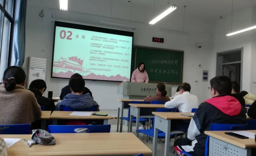 接着汤小龙同学也进行了团支书的述职报告,1822107041团支部一向有着坚定、正确的政治方向、“积极、进取、向上”的精神作风、是活力四射、开拓创新的先进集体。在2020年度的团支部各项主题活动中,支部共计五项活动被学院评选为“优秀活动”,被学院公众号选取进行宣传表彰。述职最后,作为团支书汤小龙同学向团支部提出了2021年的发展愿景,其中包括:发挥新媒体的作用,更多地展示团支部的风采、积极与职场就业接轨、加强与兄弟团支部的合作、向党支部输送更多优秀共青团员等。