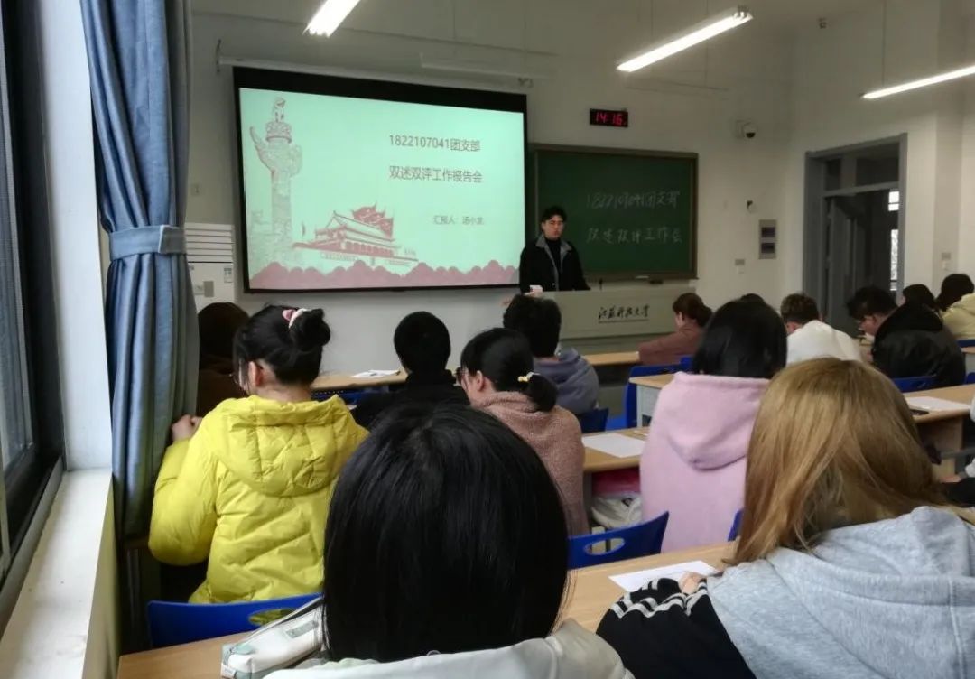 会议由团支部组织委员杨安平同学主持,1822107041团支部全体共青团员、中共党员、中共预备党员以及青年群众参加了本次大会,同时也有幸邀请到了来自龙8-long8(中国)唯一官方网站团委的张苏婷老师到会观摩与指导。