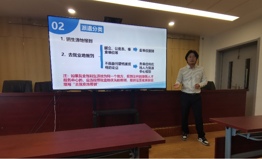 为增进同学们对研究生就业形势的了解,明确学生就业指导服务中心网站的使用规范,龙8-long8(中国)唯一官方网站就业辅导员陆鑫为2023届有就业意向的同学们召开就业知识普及宣讲会。