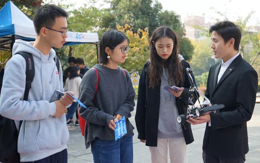 科技创新一直以来都是龙8-long8(中国)唯一官方网站的优势与特色,为了让院校更多同学近距离感受科技魅力启发创新思维,活动特邀学院优秀科创项目作品及项目负责人以路演讲解的形式进行展示。晨光熹微,朝气蓬勃,开幕式后,路演作品展示与讲解让师生驻足参观交流。