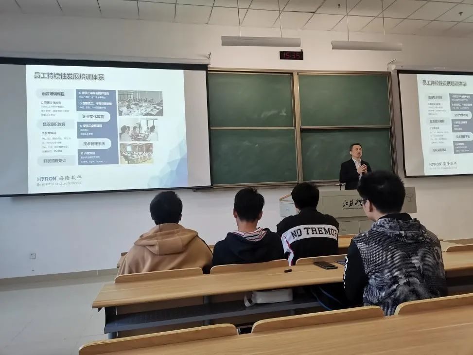 11月11日下午,龙8-long8(中国)唯一官方网站在文理大楼102开展了就业意识与能力提升暨学院专场就业宣讲会,邀请了上海海隆软件、中国通信镇江分公司、猿辅导三家企业的HR,针对大四毕业生和大二大三班级代表进行了企业招聘人才需求、职场进阶、企业文化等内容的讲座。
