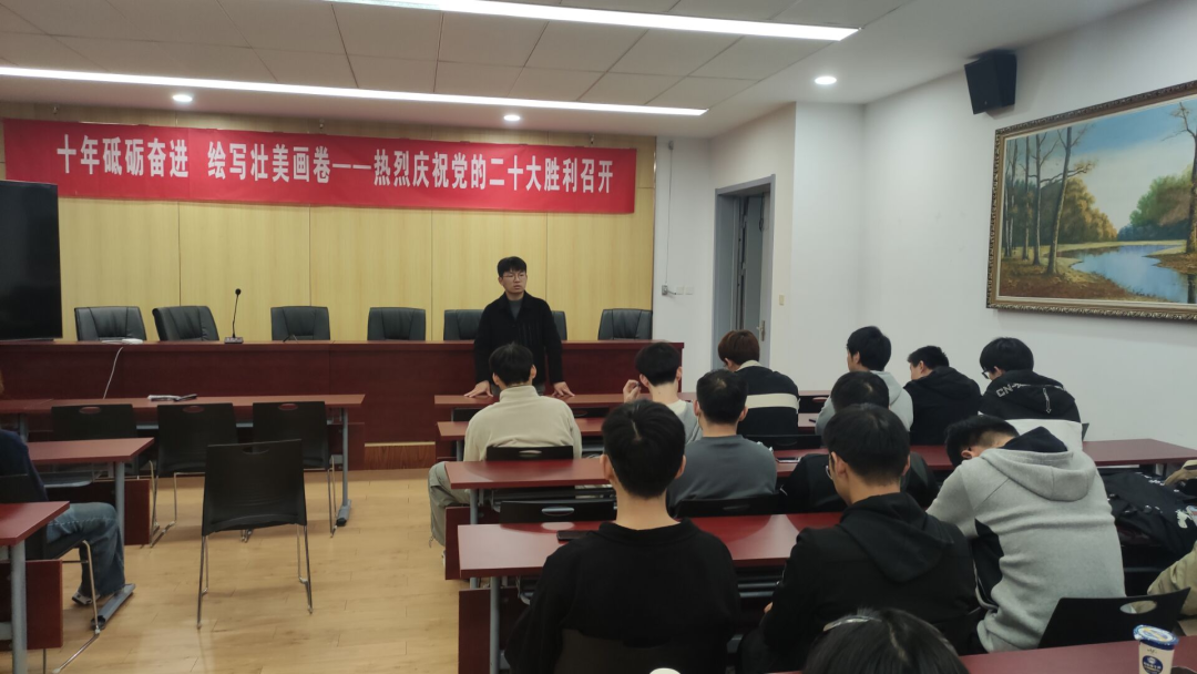 张威老师带领支部开展领学活动,以小组讨论与发言的方式,深入学习党的二十大精神,让支部同学以更加积极向上的精神面貌庆祝党的二十大的胜利召开。