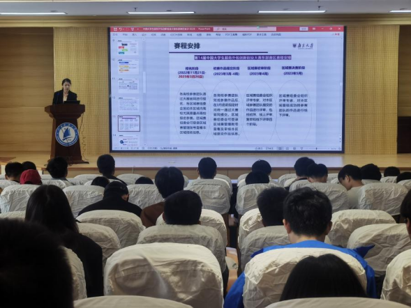 活动伊始,老师为同学们介绍了“中国大学生服务外包创新创业大赛”的基本信息,包括大赛简介、大赛职能、大赛分类、参赛对象、赛程安排等。