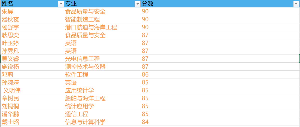 竞赛表现突出学生名单