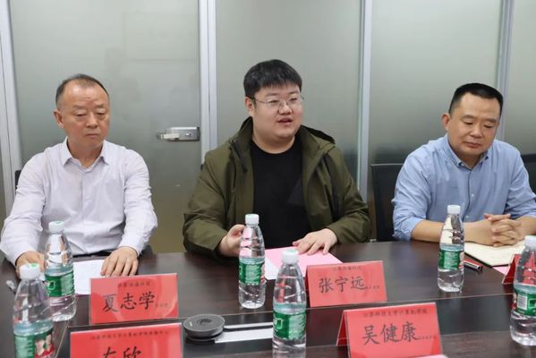 会上,公司执行董事张宁远对母校领导表示热烈欢迎,对公司概况、发展特色、企业文化、福利待遇、岗位需求等方面做了全方面的介绍,他表示,以本次校企合作为契机,为今后在人才培养、科技创新、教育培训等领域的合作打下基础,江苏淮海数码科技有限公司将为学校、学院提供优质的实践教学平台,推动科研成果转化落地,探索协同育人、创新培训新模式。