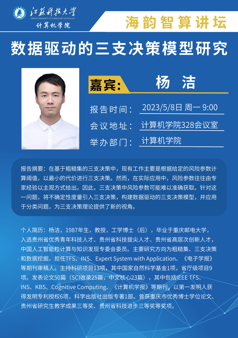 海韵智算讲坛:(杨洁)数据驱动的三支决策模型研究