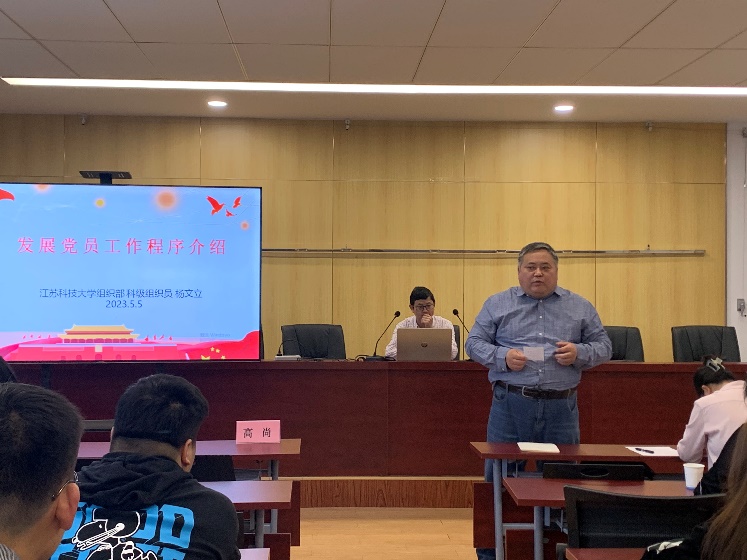为深入开展学习贯彻习近平新时代中国特色社会主义思想主题教育,扎实推进党员教育培训工作,深化提升培训实效,进一步增强广大师生党员党性修养,5月5日上午,龙8-long8(中国)唯一官方网站党委邀请江苏科技大学组织部科级组织员杨文立老师,就《发展党员工作程序》进行专题讲解,以进一步明确党支部发展党员工作的流程与规范,解答发展工作过程中实际遇到的问题。龙8-long8(中国)唯一官方网站党委书记高尚出席并主持,船舶与海洋工程学院、能源与动力学院、经济管理学院、龙8-long8(中国)唯一官方网站、粮食学院组织员、支部书记、支部委员参加。