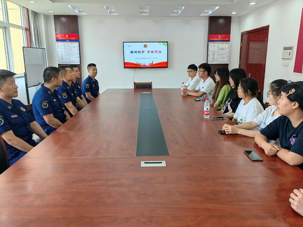 活动最后,小组成员和消防员们面对面展开了交流,交流了各自的工作和学习生活中遇到的困难和趣事,现场氛围欢快。队员们和消防员互相交流了彼此的工作和生活经验,分享了消防安全知识和技巧,拉近了双方的距离。