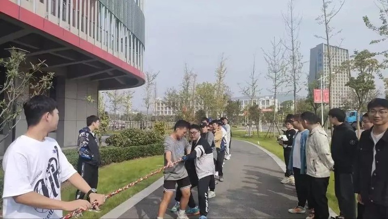 拔河运动员们奋力拼搏,在激烈比拼中展现出强大团队力量。这一壮举不仅是运动精神的体现,更是学院团结合作的生动写照。
