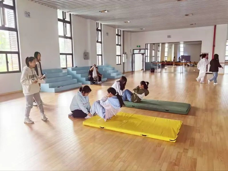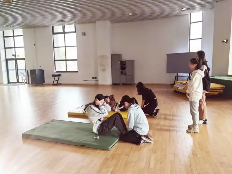 在长山校区文体中心的健美操房进行了体育项目女子团体仰卧起坐的参赛人员选拔。