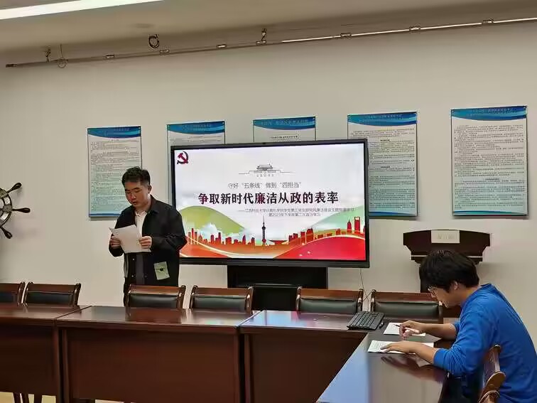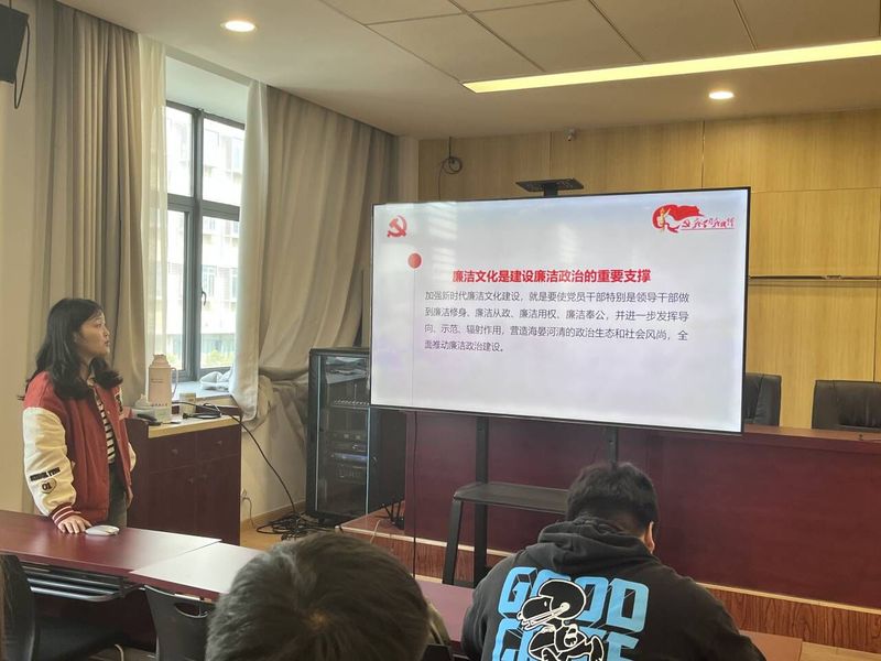 10月19日,学院各党支部开展了廉政文化学习和教育专题活动。其中,学生第三党支部支部书记陆鑫老师在党支部讲授了题为“争取新时代廉洁从政的表率”的专题党课;研究生第二党支部观摩了央视《清廉中国·微视频》系列节目。实验中心及基础教学部教工党支部开展了“不受日廉,不污日洁”的廉洁主题活动,张天安老师给各位党员教师上了一节生动的廉洁思政教育课,将廉洁文化与书法作品有机结合,以传播廉洁文化为主要内容的书法艺术作品,弘扬了清风正气,倡导了廉洁从教理念。