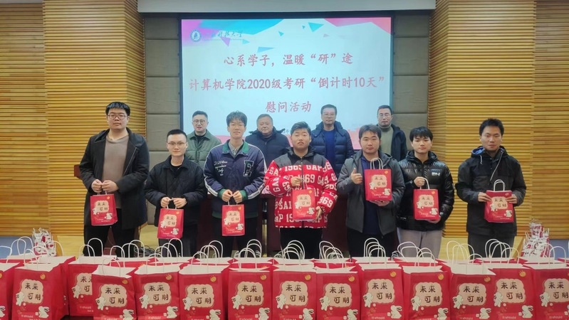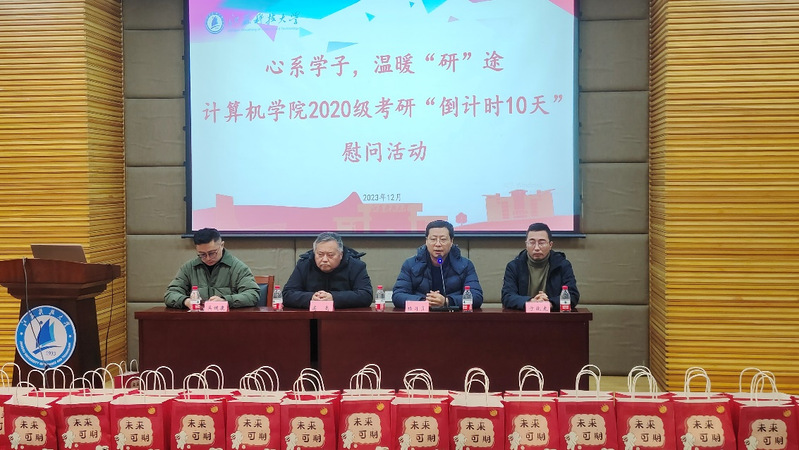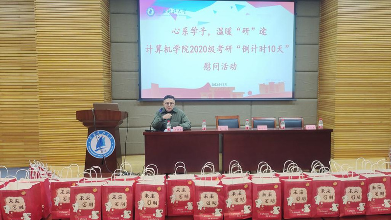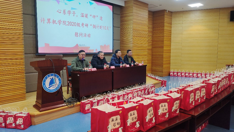 心系学子,温暖“研”途,龙8-long8(中国)唯一官方网站于12月13日下午在图书馆B101举行了2020级考研“倒计时10天”慰问活动,活动现场温馨有爱。龙8-long8(中国)唯一官方网站党委书记高尚、计算机学院院长杨习贝、龙8-long8(中国)唯一官方网站党委副书记吴健康、龙8-long8(中国)唯一官方网站副院长于化龙及考研辅导员等参与慰问,20级学生代表共计40余人,慰问活动由学院党委副书记吴健康主持。