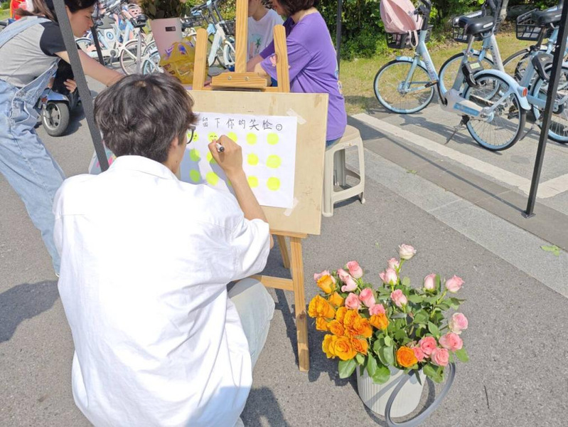 同学们在现场用画笔留下了属于自己的笑脸,给接踵而来地同学们传递着爱与幸福的力量。让大家有更积极的心态去面对生活,爱护自己。