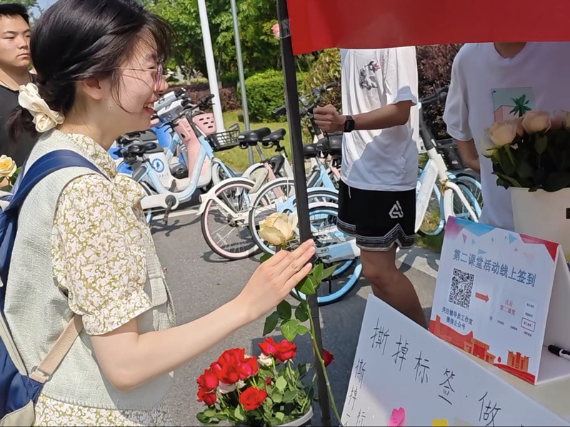同学们将自己的烦恼写在纸上,用这些来自内心的声音换取一朵美丽的鲜花。这个环节不仅让学生们有机会释放内心的压力,让他们感受到来自他人的关怀和温暖。还可以送给自己一朵美丽的鲜花作为祝福。