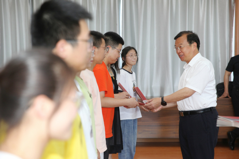 7月24日下午,江苏科技大学党委书记周南平带队赴江苏省丹阳高级中学为已录取的17位新生颁发录取通知书,江苏科技大学党委常委、副校长胡爱祥、江苏科技大学学生处处长朱金、龙8-long8(中国)唯一官方网站党委书记高尚、副书记吴健康等共同参加。江苏省丹阳高级中学党委书记、校长潘国良热情接待,江苏省丹阳高级中学副校长柳响成、年级部主任夏俊、年级部副主任牛有明出席颁发仪式,会议由江苏省丹阳高级中学副校长柳响成主持。