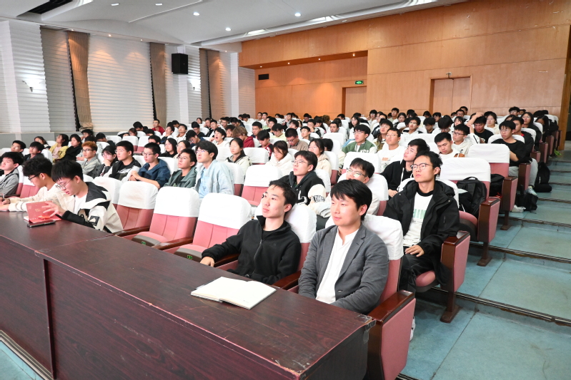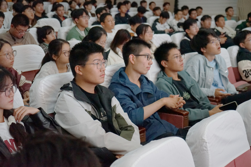10月31日晚19:00,龙8-long8(中国)唯一官方网站2024级新生转型教育课第四讲在梦溪校区龙8-long8(中国)唯一官方网站厅热烈开展。学院计算机科学与技术专业负责人胡春龙老师、计算机协会会长彭羽轩同学受邀担任讲座主讲人。现场气氛热烈,2024级计算机类专业的学生齐聚一堂,认真聆听讲座,软件工程、人工智能专业的学生在教室内通过网络直播同步参与学习,全体新生辅导员共同参加。活动由学院负责新生转型教育课的辅导员张威老师主持。
