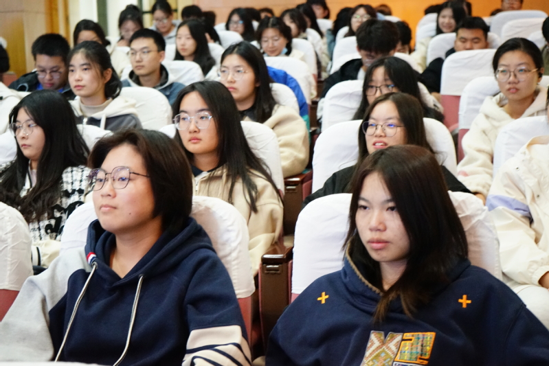 在讲座进行期间,邓老师别具匠心地开展了一次关于“为什么选择人工智能专业”的问卷调查。调查结果显示,大部分学生皆因对本专业的喜爱而做出选择,此结果令邓老师倍感欣慰。紧接着,邓老师着重强调,在当前大一学习阶段,同学们务必扎实学好英语、高等数学等基础学科,同时要高度重视C++、Python等重要编程语言的学习。她向同学们介绍了颇具借鉴意义的“1:2学习模式”:即上完一节课后,利用两节课的时间去深入消化所学内容,唯有如此,方能为后续的专业学习筑牢根基。最后,邓老师指出,同学们应当积极踊跃地参与各类竞赛等专业活动,积极加入研究团队,进一步提高自主学习与团队协作能力,培养创新思维。