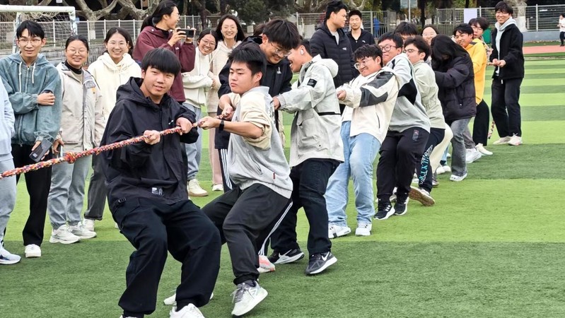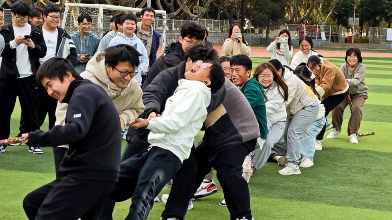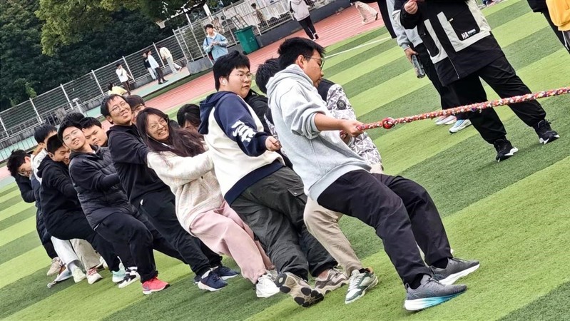 当日,赛场周围早已被热情的同学们围得水泄不通,龙8-long8(中国)唯一官方网站的同学以绳为媒,展开了一场力量与团队精神的较量。