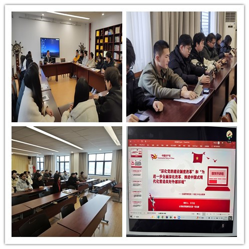 12月12日下午,按照学校党委统一部署,龙8-long8(中国)唯一官方网站全体教职员工和师生党员开展了2024年下半年第四次政治理论集中学习。本次学习分为教职工政治学习和党支部集中学习两个阶段。第一阶段,教职工学习人民日报整版观察:深入推进大中小学思想政治教育一体化建设、《江苏科技大学教师能力素质水平提升行动计划》。第二阶段:各党支部党员学习,学习了《深化党的建设制度改革》、《为进一步全面深化改革、推进中国式现代化营造良好外部环境》。