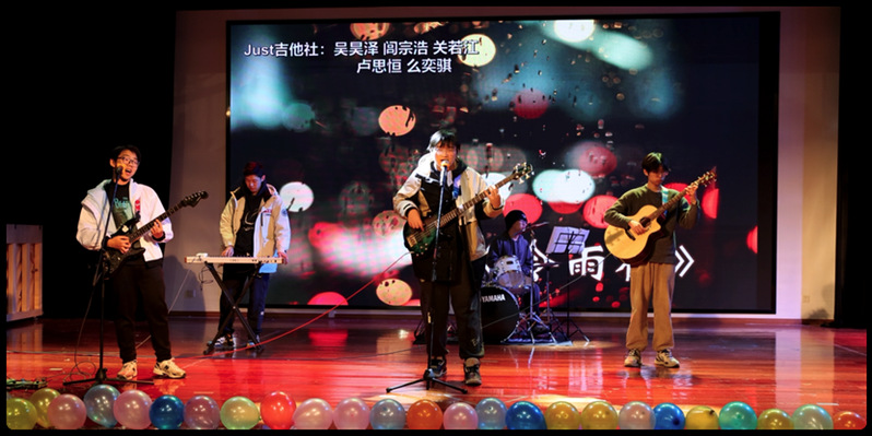 晚会在Just吉他社的乐队演奏《冷雨夜》中拉开帷幕,吴昊泽、闾宗浩、关若江、卢思恒、么奕骐等成员的精湛技艺,为观众带来了一场视听盛宴。紧接着,严立仁和孙飒的合唱《红绣花》以其悠扬的旋律和深情的演绎,传递了传统文化的韵味。
