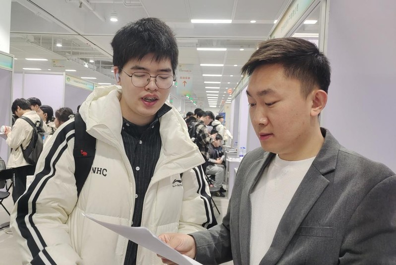 精准帮扶,助梦启航,就业辅导员现场为学生提供现场咨询、简历优化、面试指导等一站式就业服务。招聘会现场人头攒动,毕业生们积极投递简历,与企业HR深入交流。
