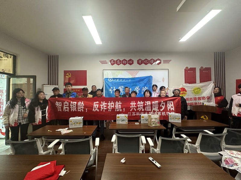 图为江苏科技大学“智慧助老”公益服务实践团的同学揭露生活中的诈骗陷阱