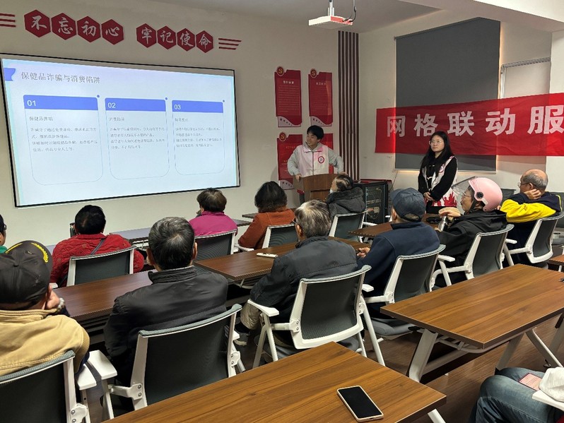 在防诈骗知识普及方面,结合近期高发的电信诈骗案例,志愿者们运用通俗易懂的语言,深入浅出地揭露了 “保健品推销”“冒充亲友转账” 等常见的诈骗手段。除了口头讲解,志愿者们还通过播放反诈短片的形式,让老人们更加直观地了解诈骗的危害和防范方法。现场,志愿者们还演示了如何拦截骚扰电话、识别钓鱼链接,并帮助老人安装 “国家反诈中心” APP,为老人们的财产安全筑牢防线。