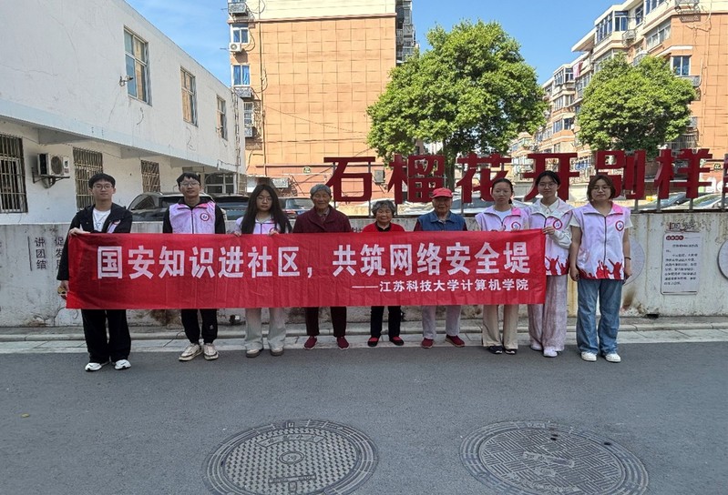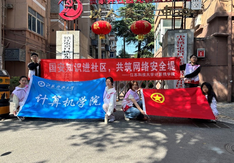 图为江苏科技大学“国安知识进社区”志愿服务实践团同学合照
