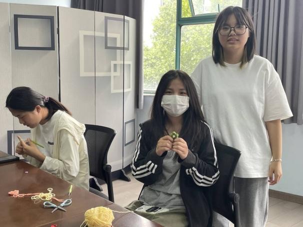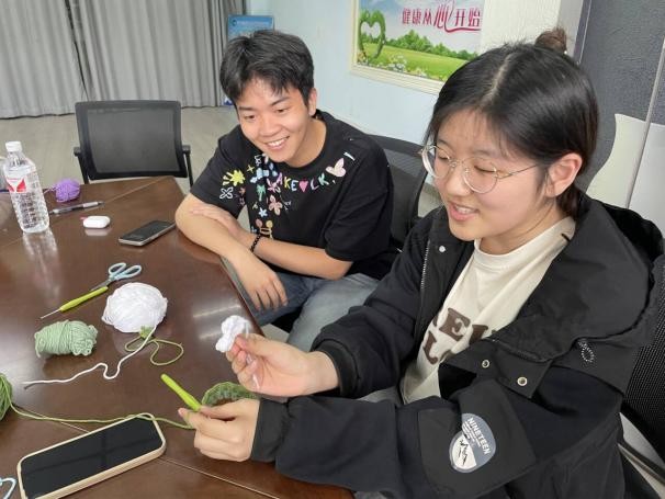 活动能够顺利开展,离不开两位2023级人工智能专业的喻聪聪和余俊贤同学的辛勤付出。她们全程耐心指导,从基础针法的演示到复杂花样的讲解,再到针对同学们遇到的问题逐一解答,其专业与热情为活动增添了许多温暖。