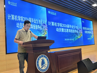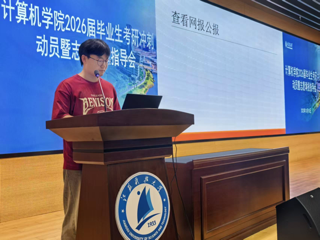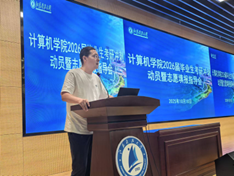 副院长于化龙围绕全国计算机专业考研趋势展开分析,指出多数高校计算机相关专业以408课程为考核重点。他建议同学们结合自身实际情况,理性选择报考院校,做到目标明确、定位准确。